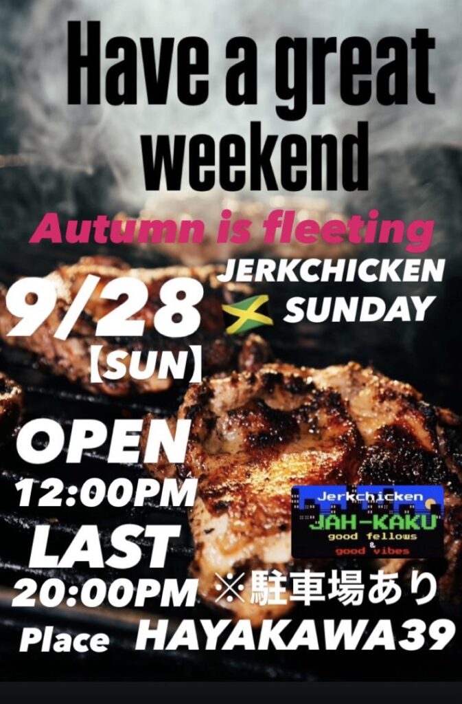 9/28(日) HAVE A GREAT WEEKEND – JERKCHICKEN SUNDAY by JAH-KAKU @早川 HAYAKAWA39
