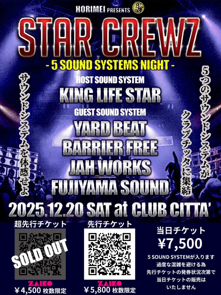 12/20(土) STAR CREWZ 2025 – 5 SOUND SYSTEMS NIGHT – @KAWASAKI CLUB CITTA’